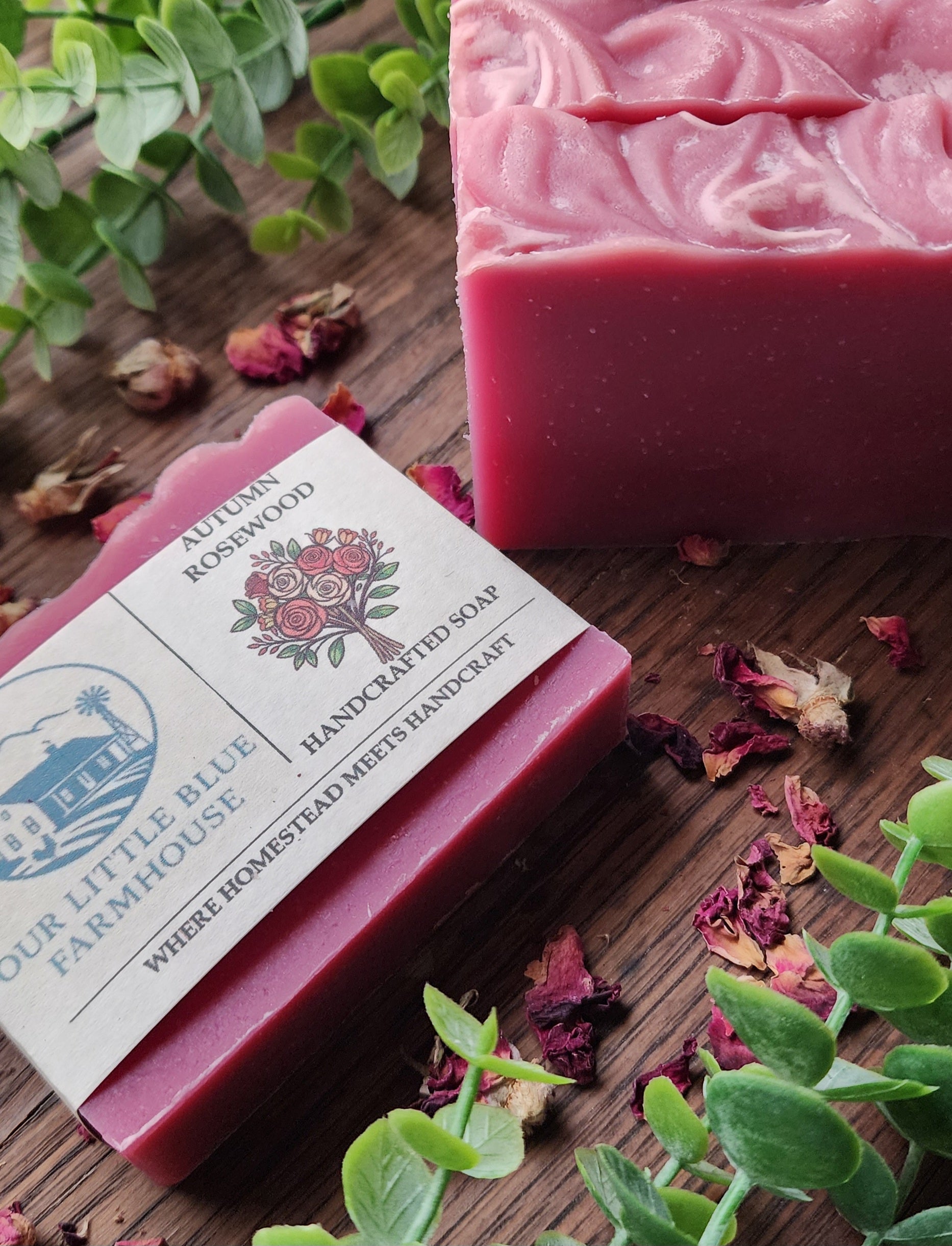 Autumn Rosewood - blends the soft elegance of rose with warm cedarwood, bright hints of orange, and a touch of sweet resinous benzoin for a cozy, woodsy floral.
