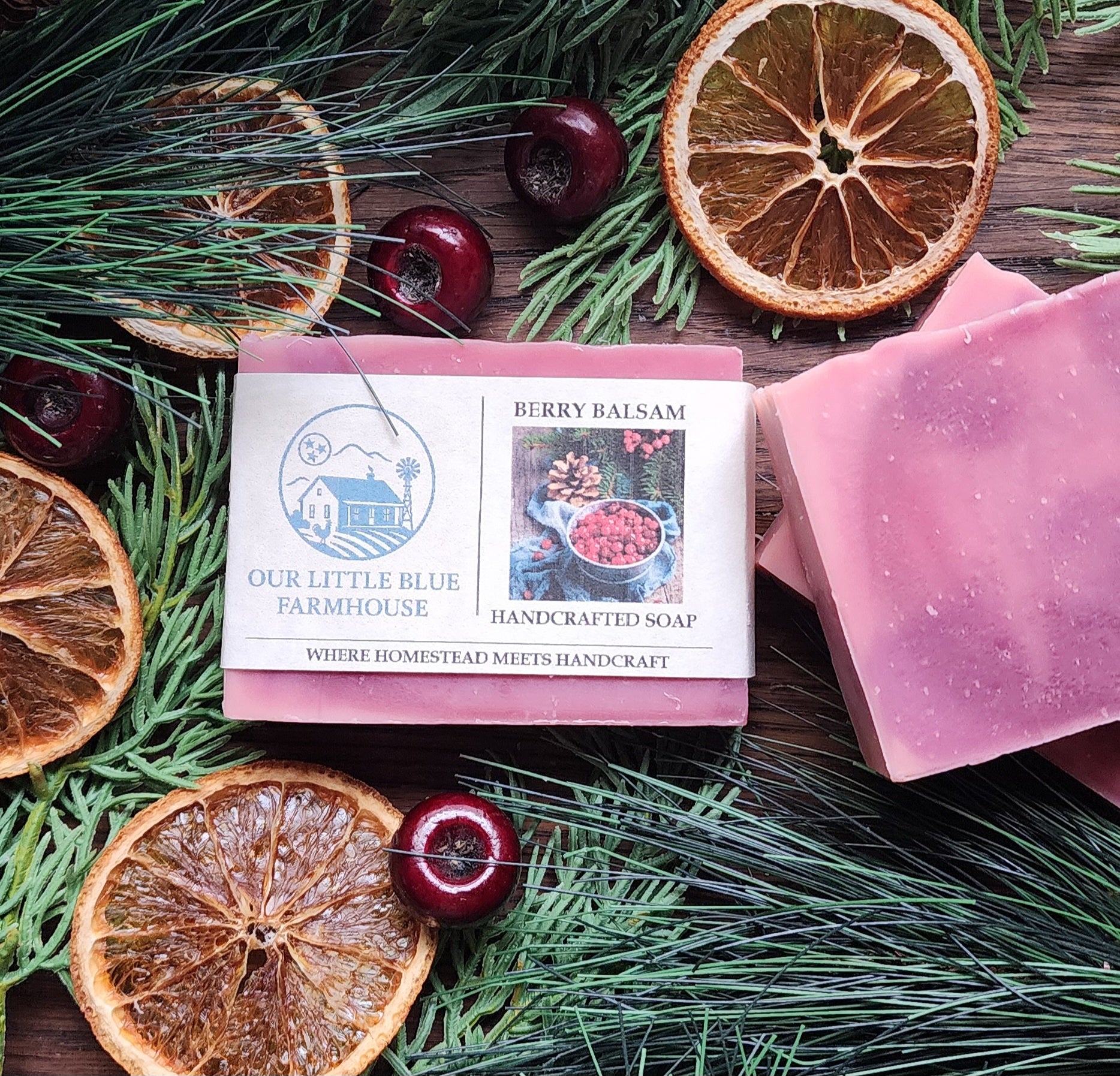 Berry Balsam - top notes of citrus zest, berries, and mixed florals, followed by a refreshing middle note of balsam, sage, and mint. Finally, the blend finishes with bottom notes of musk, patchouli, labdanum, and orris root, creating a unique winter aroma.