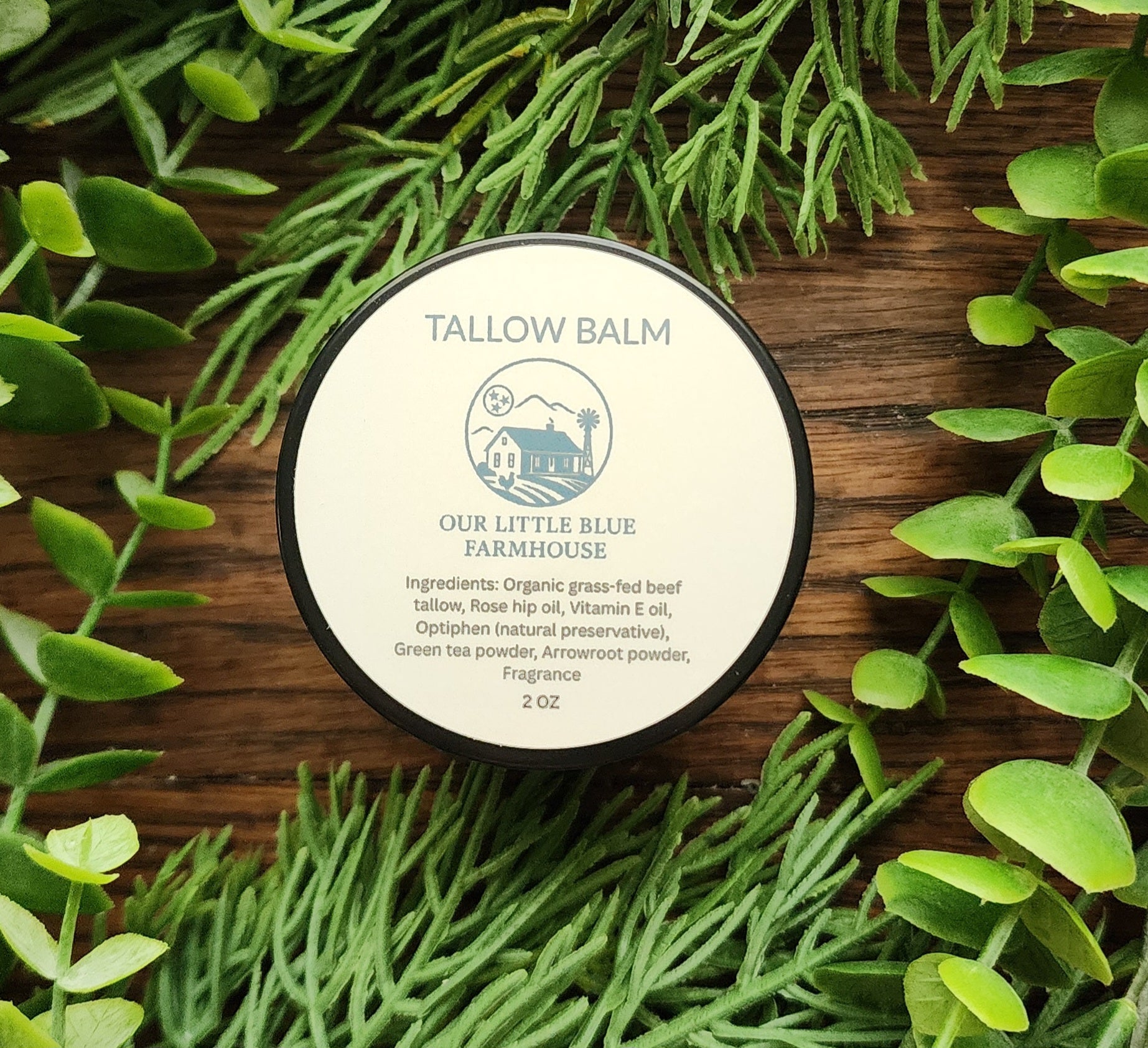 - Grass-Fed Beef Tallow – A rich source of skin-compatible fatty acids, vitamins A, D, E, and K, tallow deeply hydrates, repairs the skin barrier, and promotes elasticity while being highly bioavailable to human skin.