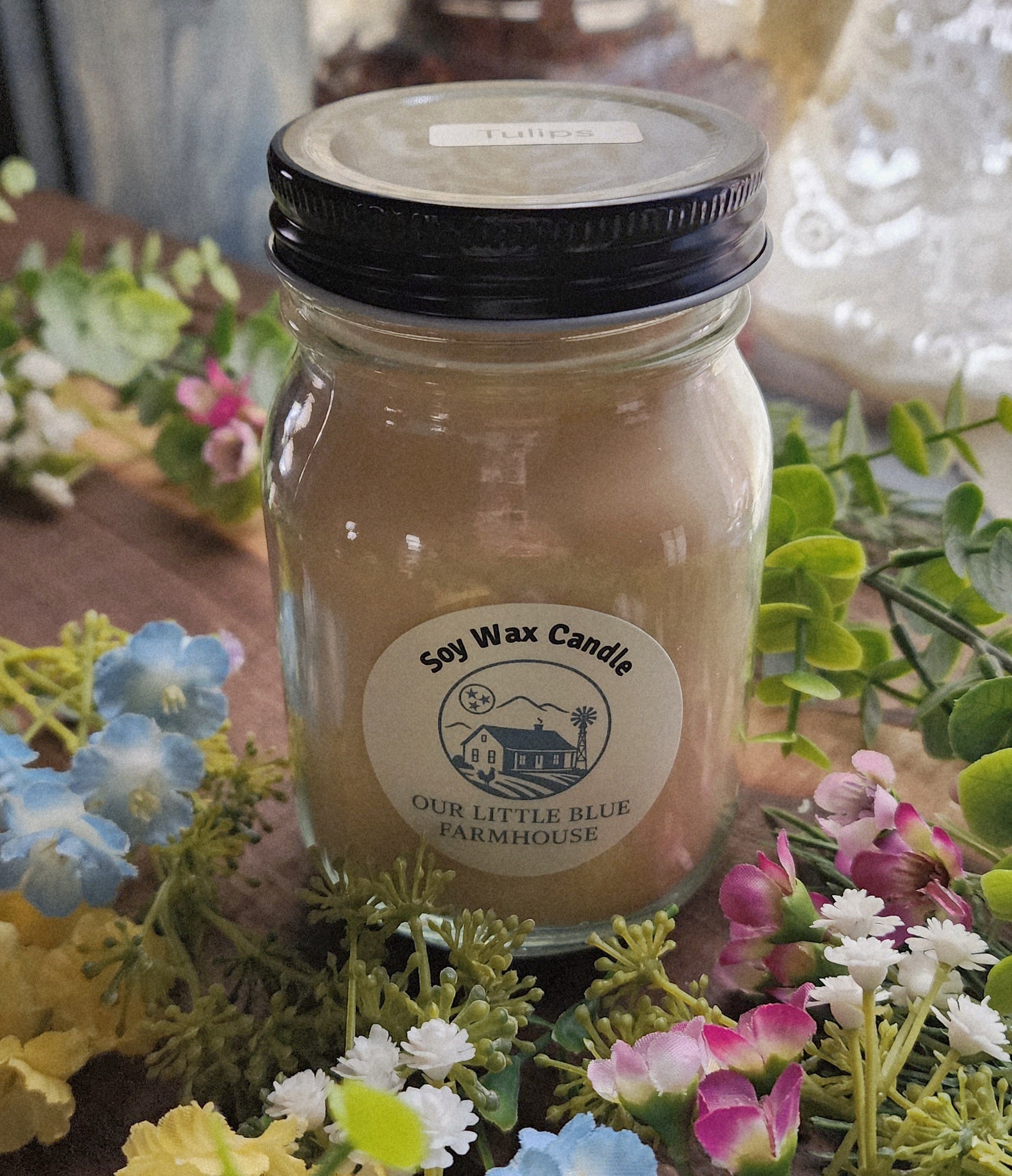 Tulips - enjoy the scent of spring with our Tulips candle! Top notes of peach and green palm add a sweet contrast to the heart of tulips and peony blossoms. A touch of musk wraps up this wonderful spring bouquet scent!