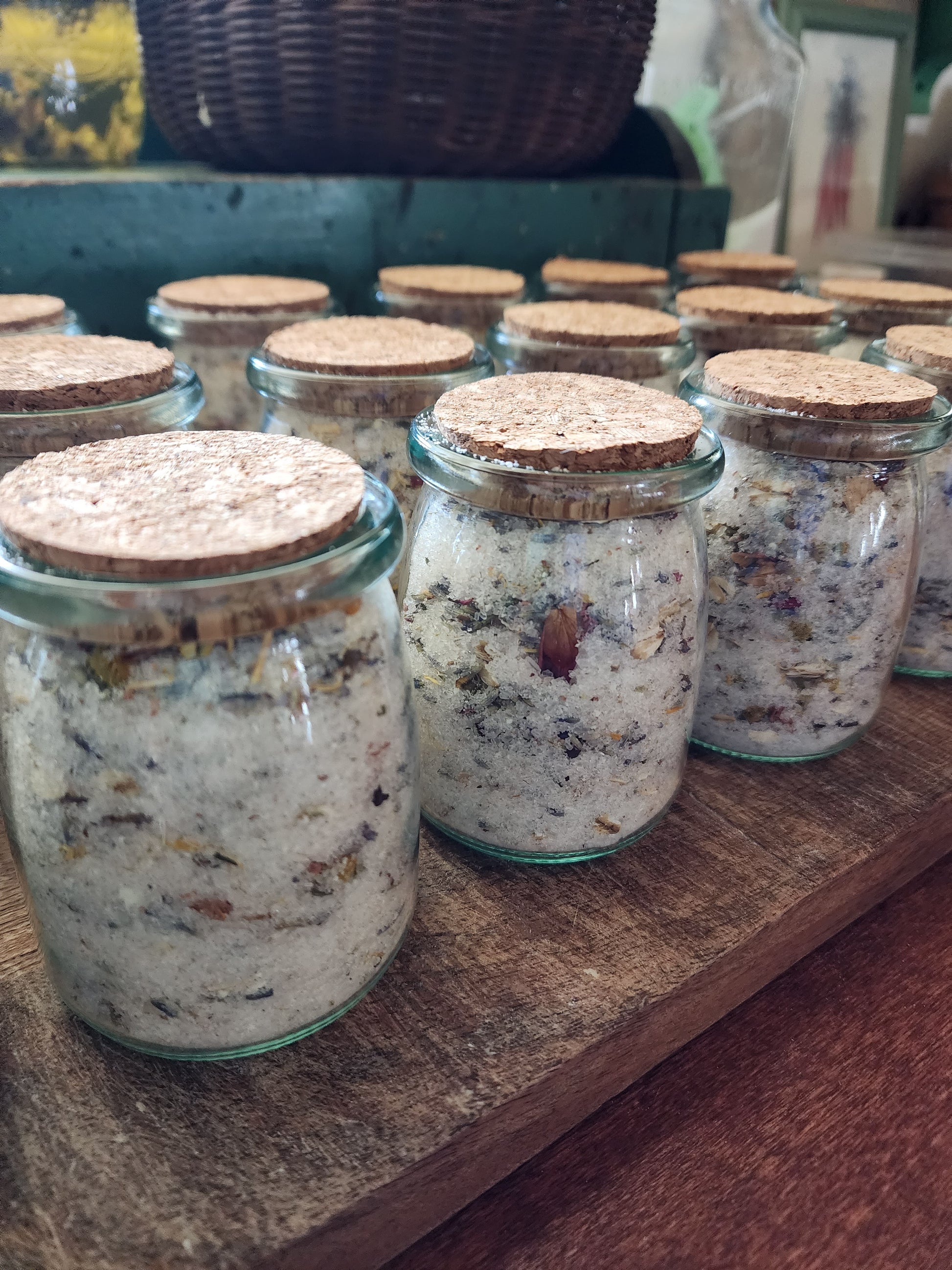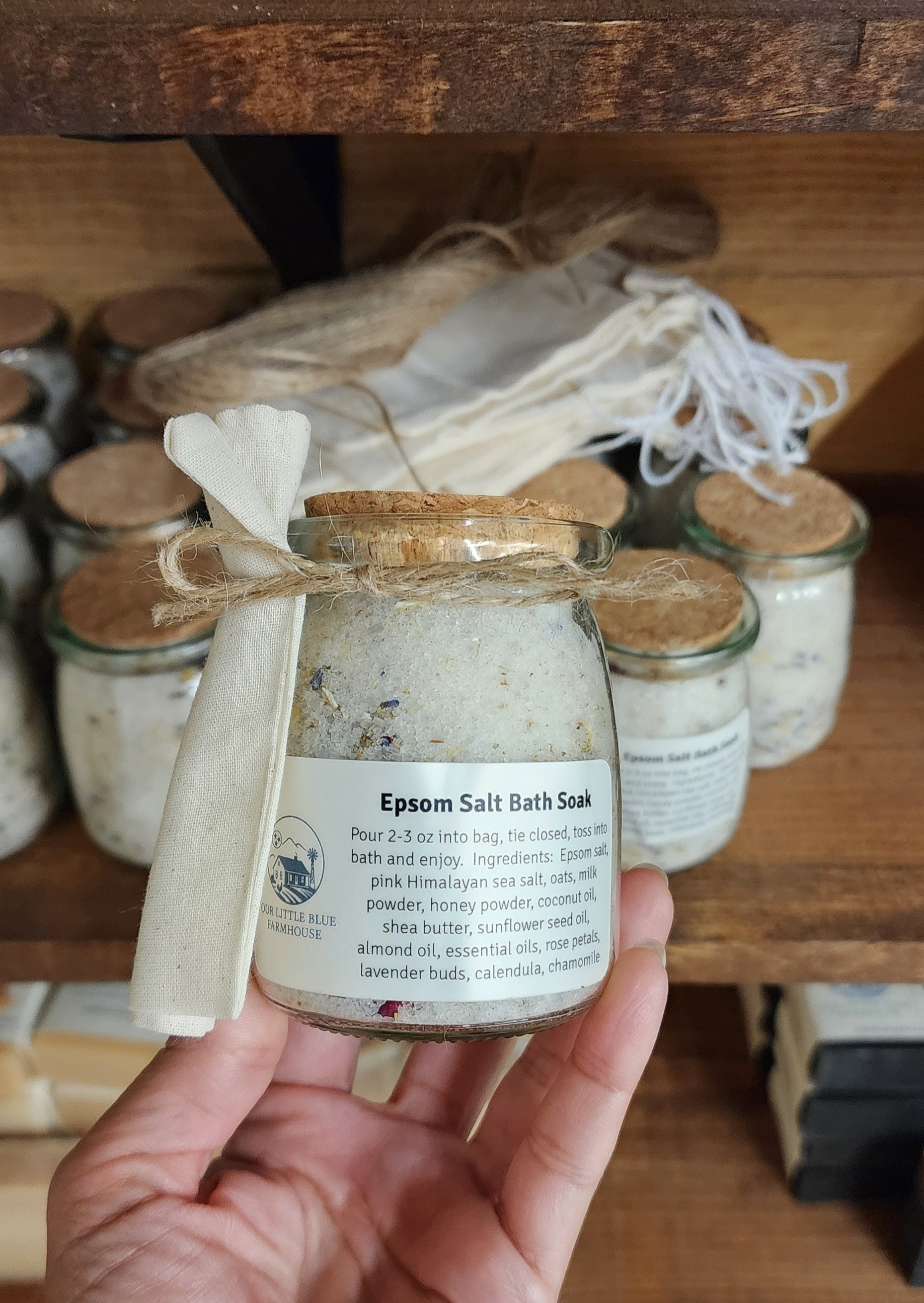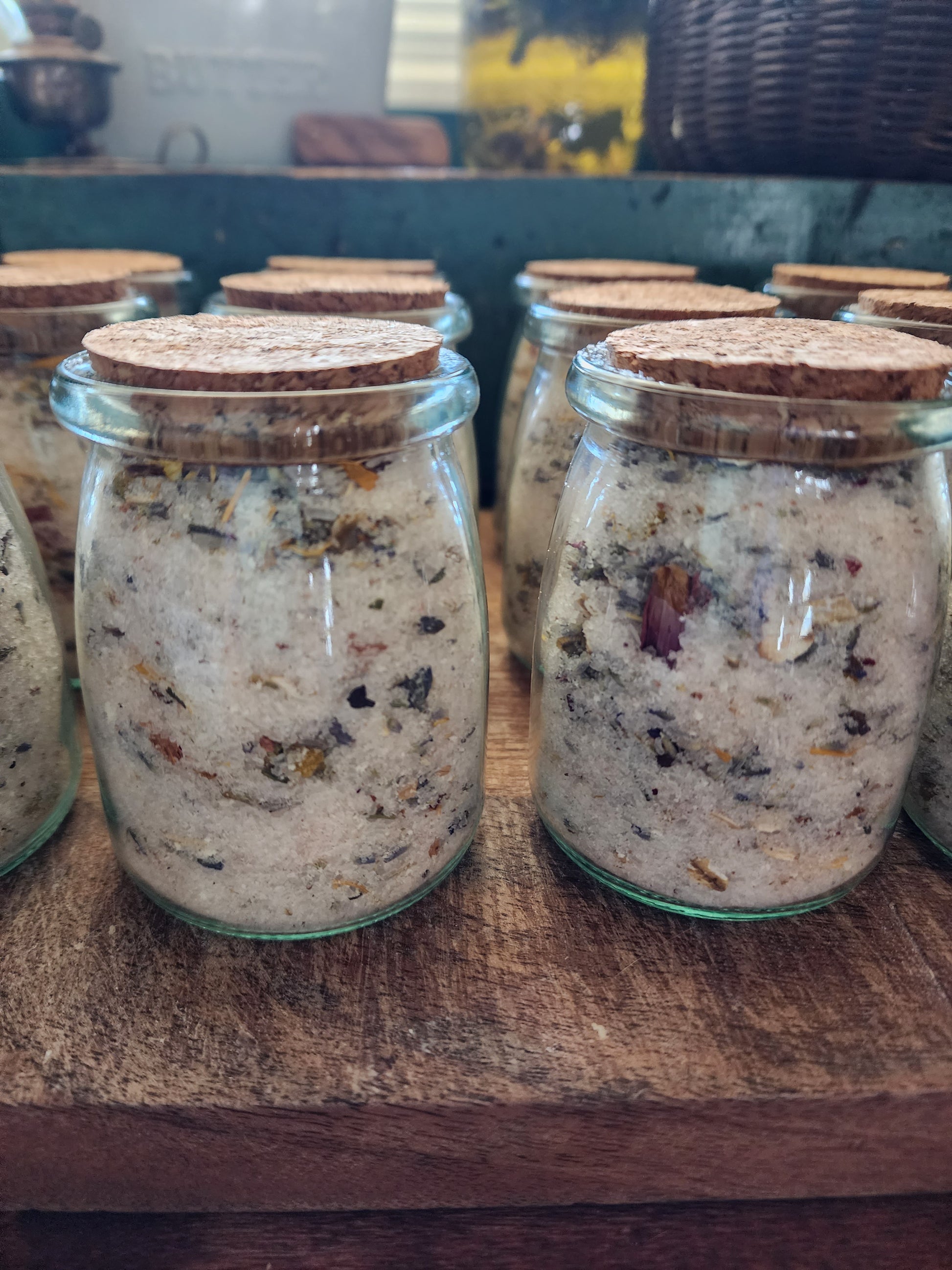 Each bath soak comes in a 7 oz glass jar and includes the following ingredients: