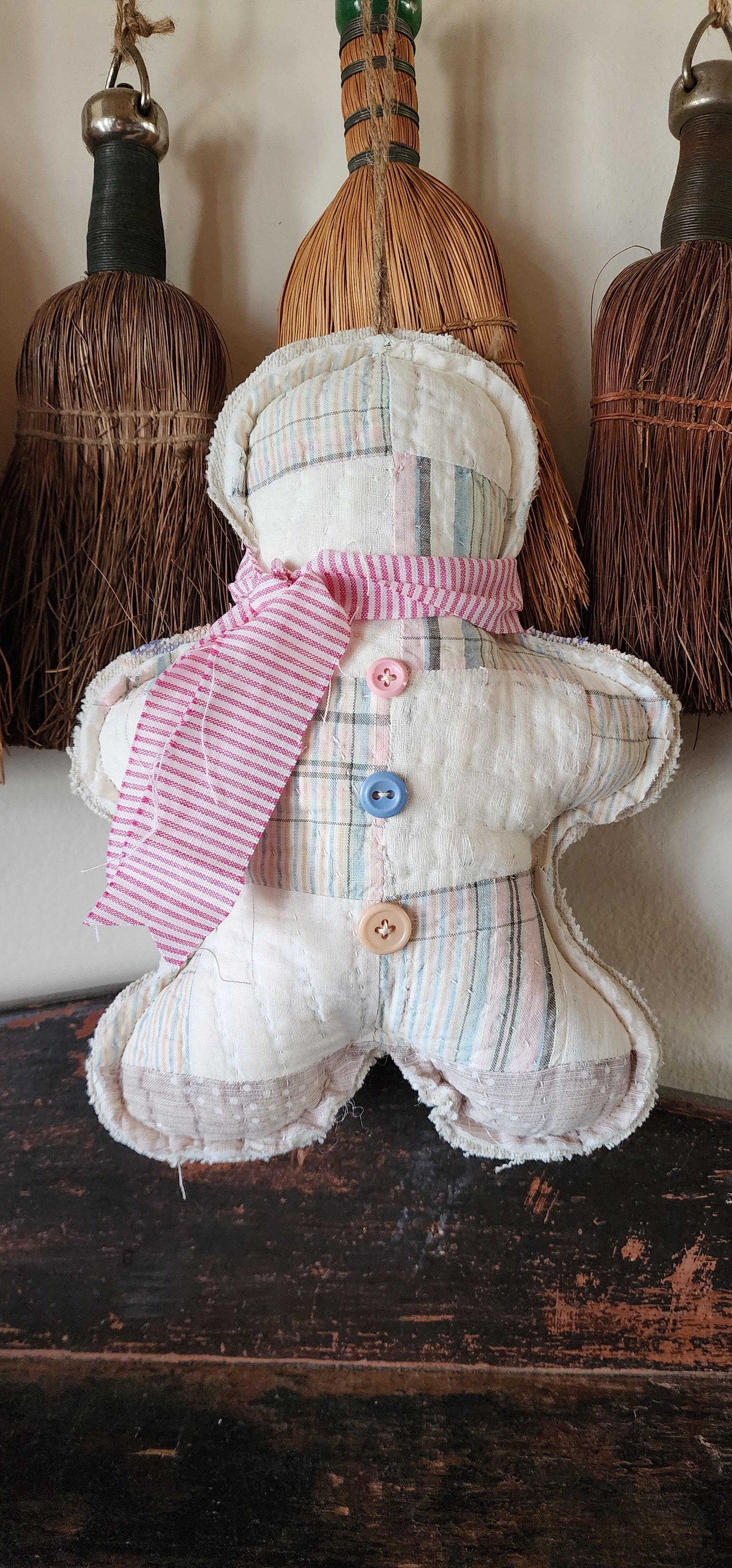 Because this gingerbread man was made with a vintage quilt there may be imperfections such as light stains and worn areas.
