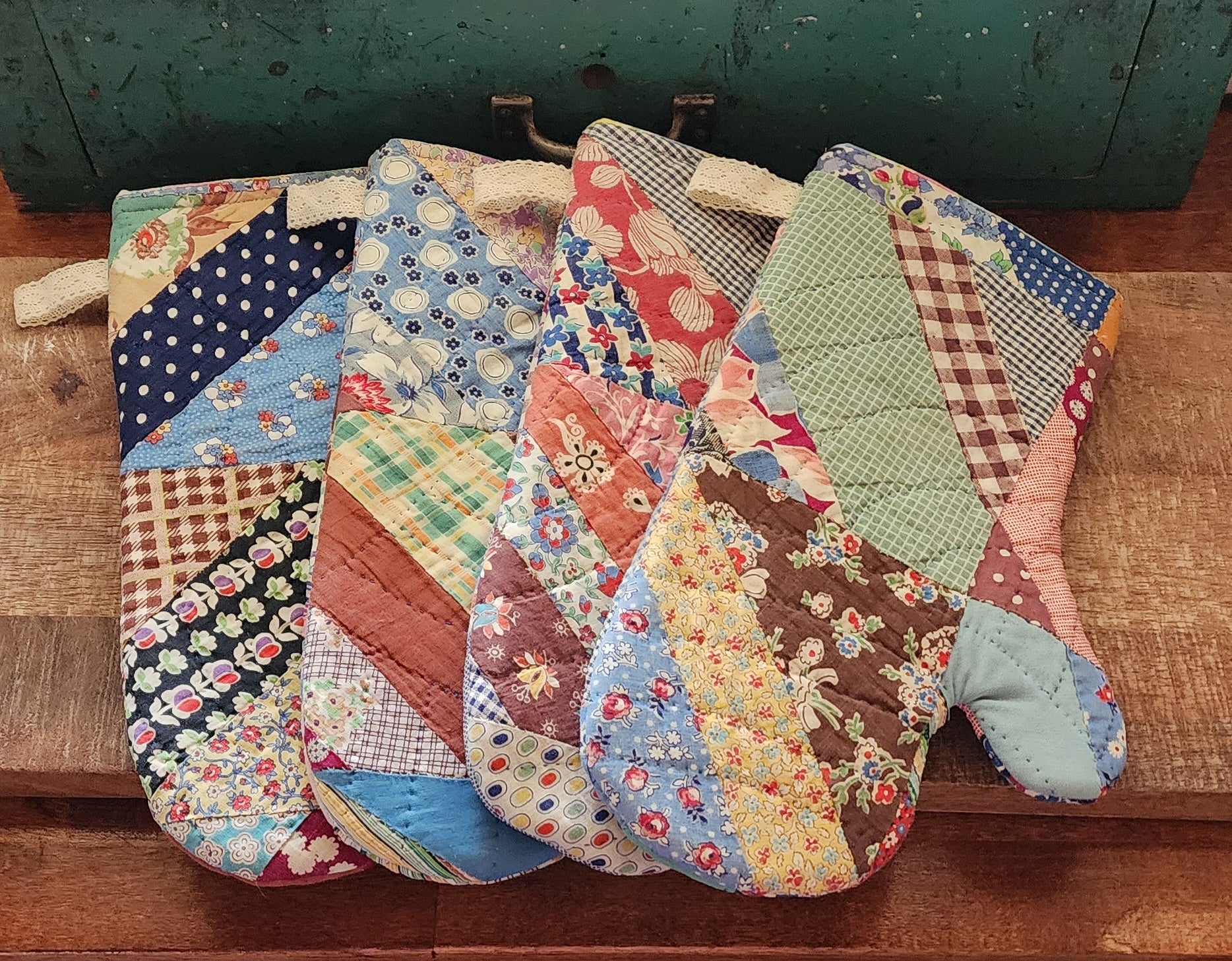 ***Because oven mitt is made with a vintage quilt, there may be light stains and worn areas on this oven mitt. I believe this adds vintage charm, but please view photos carefully!***
